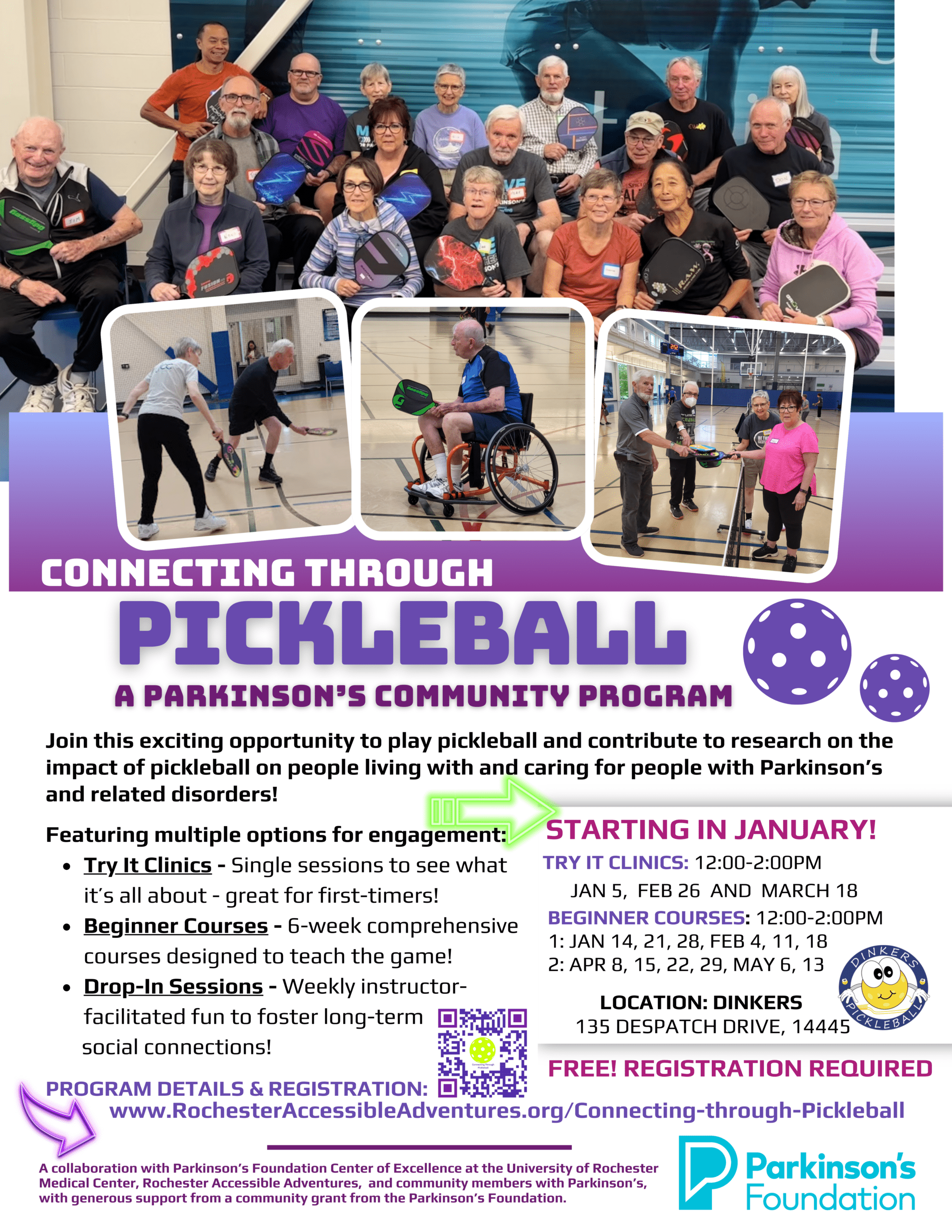 2. Through support from the Parkinson’s Foundation, Connecting through Pickleball will be free for all participants.