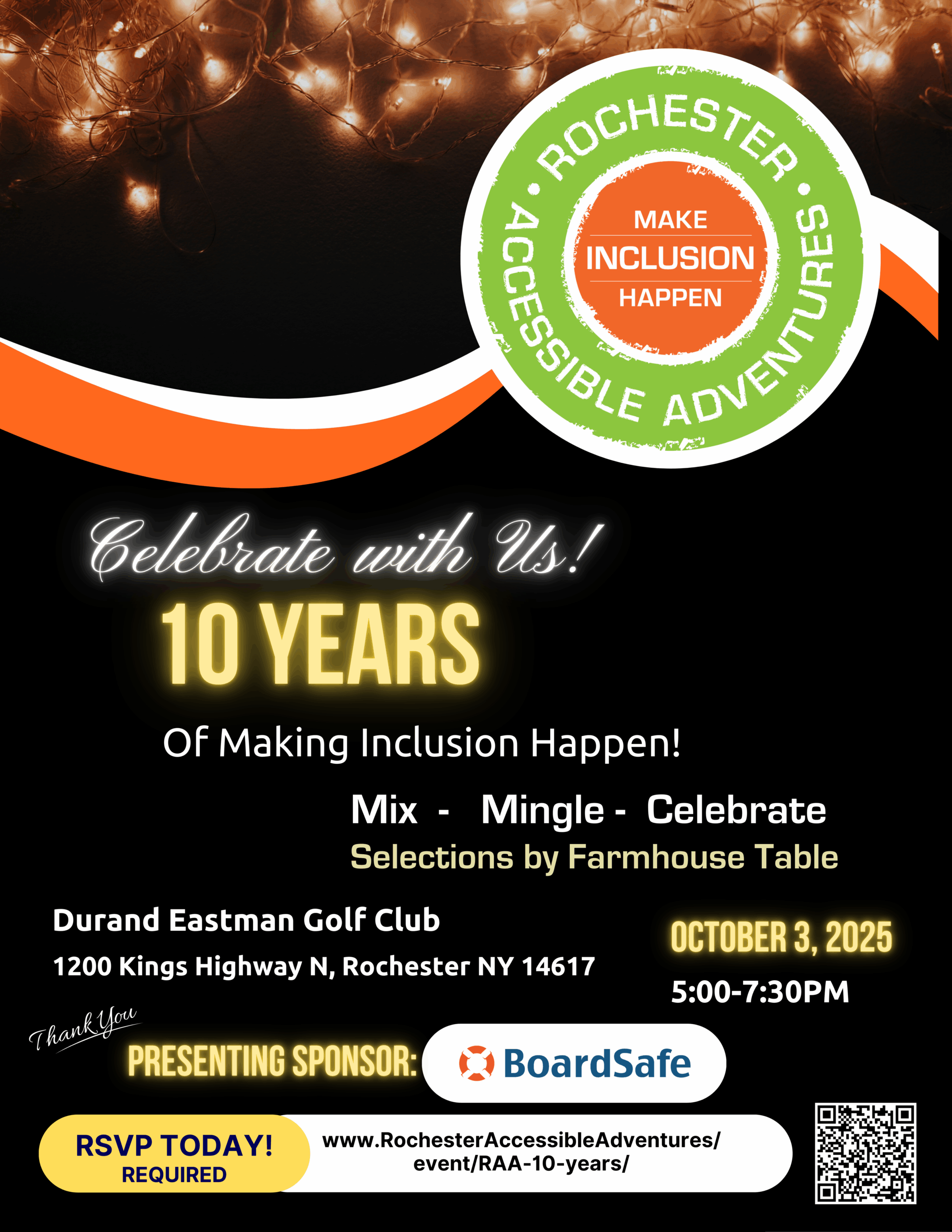 Durand Eastman Golf Club 1200 Kings Hwy N, Rochester, NY, United States🎉 You’re Invited! Rochester Accessible Adventures 10-Year Celebration 🎉 This year marks a decade of impact, inclusion, and unforgettable moments—and we want YOU to celebrate with us! Join us for a very special evening as Rochester Accessible Adventures turns 10! Together, we’ll honor the progress we’ve made in building a community where people of all Read More »